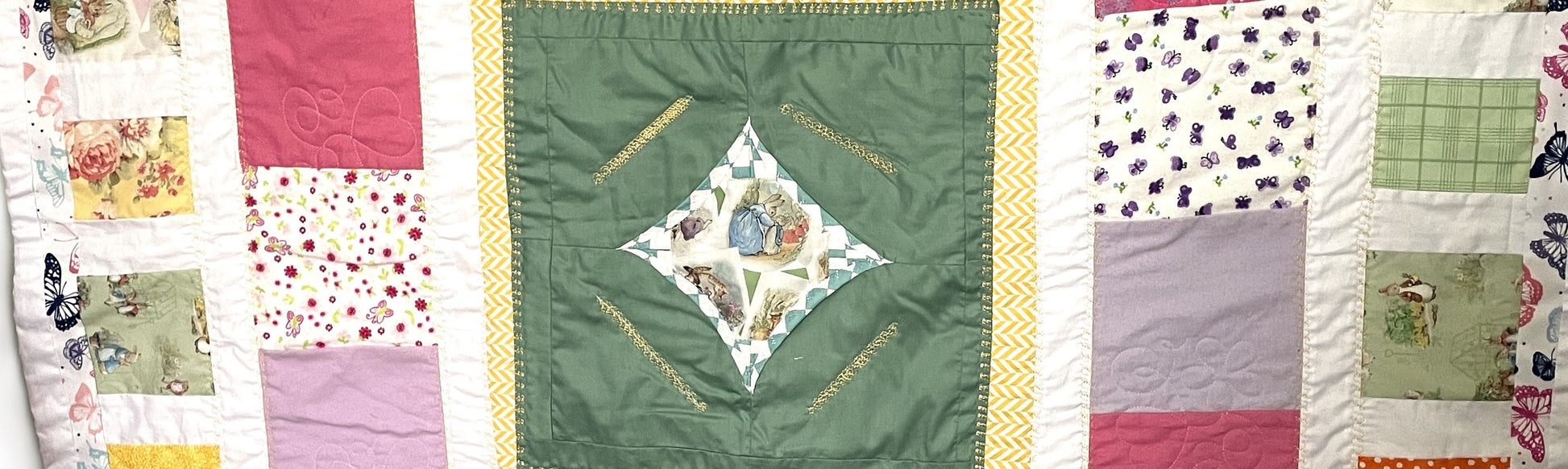 Everyone will love this warm Peter Rabbit blanket with embroidered woodland animals and pictures of Peter Rabbit's family. Get if from Sharon's Creative Touch today. 41" x 49".